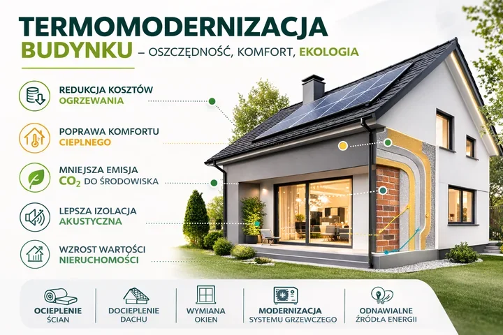 Termomodernizacja to w praktyce szeroki zakres prac, który obejmuje nie tylko ocieplenie ścian, dachu czy fundamentów. W grę wchodzi także wymiana okien i drzwi, a przy większych modernizacjach również unowocześnienie ogrzewania i wentylacji. To właśnie te elementy najczęściej decydują o tym, czy ciepło zostaje w budynku, czy znika niemal niezauważalnie wraz z kolejnymi chłodnymi dniami.