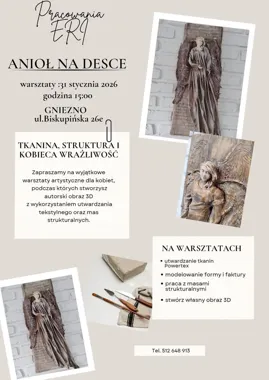 Wyobraź sobie, że w kilka godzin tworzysz własny, trójwymiarowy obraz „anioła” na desce, używając tkaniny, mas strukturalnych i techniki Powertex — brzmi kusząco, prawda? Spotkanie jest kameralne i prowadzone w twórczej atmosferze, więc warto wziąć udział i zobaczyć, jak powstaje coś niepowtarzalnego