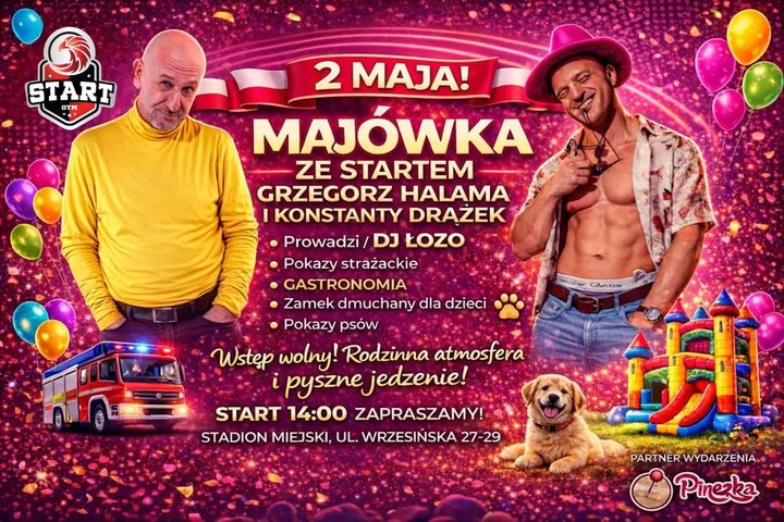 Majówka ze STARTem zapowiada się jak jeden z tych dni, które łączą wszystko, co najlepsze: trochę śmiechu, trochę muzyki, coś dla dzieci i coś dla fanów pokazów na żywo Jeśli ktoś szuka pomysłu na majowe popołudnie w rodzinnej atmosferze, warto wpaść na Stadion żużlowy Gniezno i spędzić 2 maja w luźnym, festynowym klimacie.